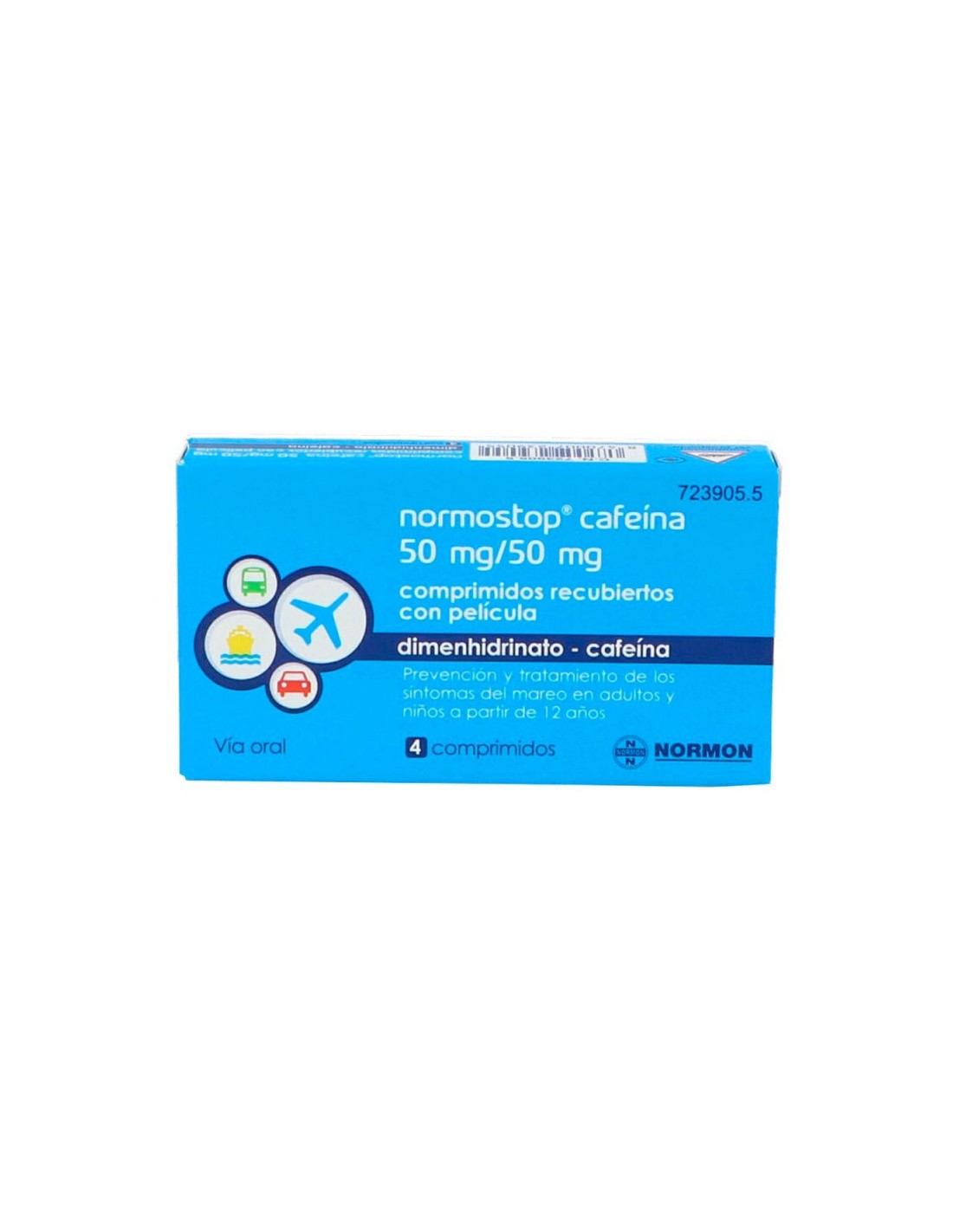 Normostop cafeína es un medicamento que está indicado en la prevención y tratamiento de los síntomas del mareo producido por los medios de transporte por tierra, mar o aire, tales como náuseas, vómitos y/o vértigos en adultos y niños mayores de 12 años.