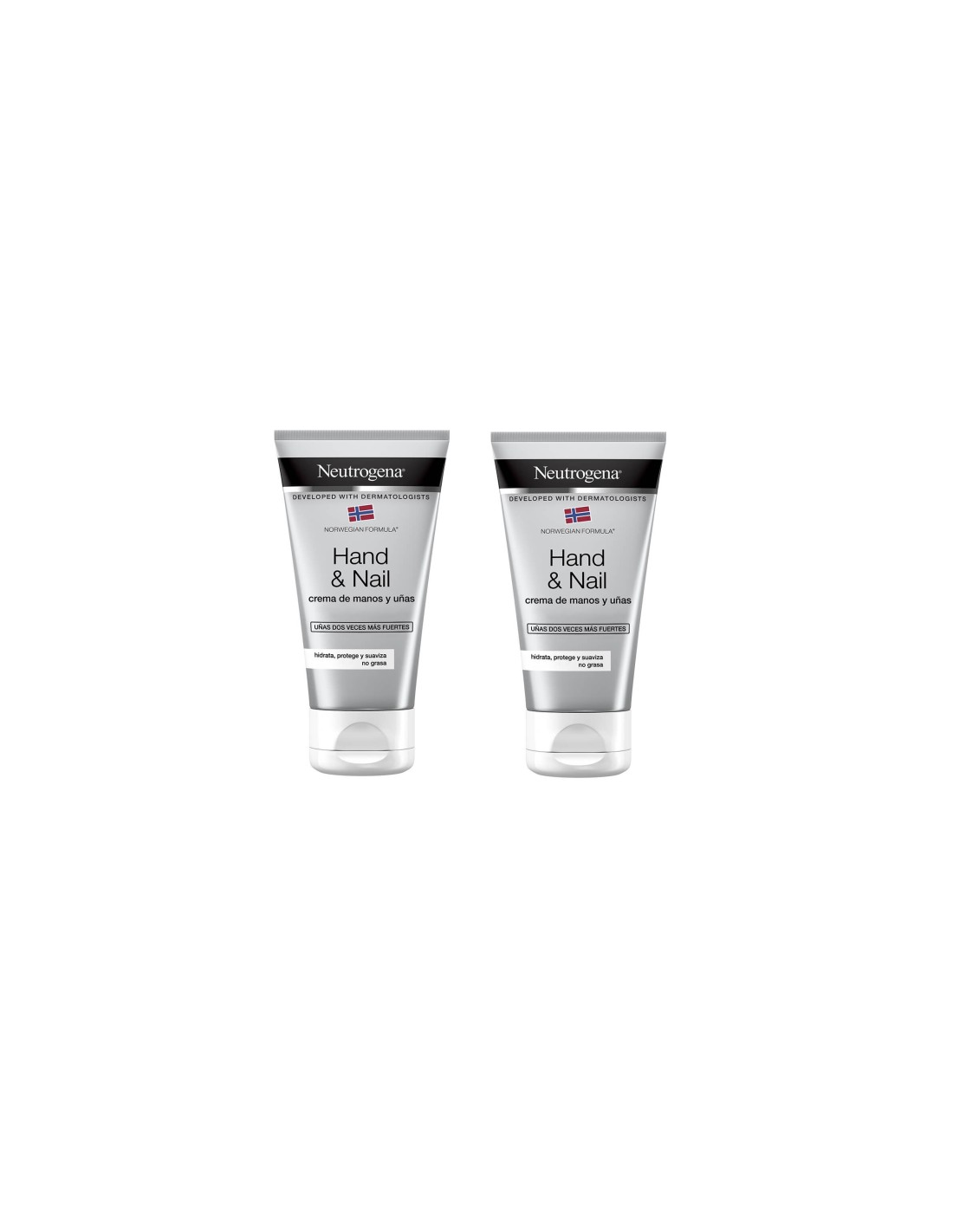 Neutrogena Duplo Crema Manos y Uñas es un tratamiento hidratante diseñado para cuidar y proteger tanto la piel de las manos como las uñas. Su fórmula concentrada y de rápida absorción proporciona una hidratación intensa, aliviando la sequedad, las grietas y el malestar. Ayuda a fortalecer las uñas frágiles y quebradizas, mejorando su resistencia y aspecto. Con su uso regular, las manos recuperan suavidad y elasticidad, y las uñas se ven visiblemente más saludables. Este formato duplo incluye dos tubos de 75 ml cada uno, ideal para un uso prolongado o para compartir.