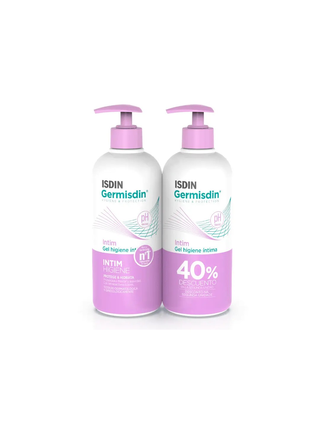 Germisdin Intim Higiene Íntima es un gel específico para la limpieza diaria de la zona íntima, formulado para respetar el equilibrio natural de la flora vaginal. Su fórmula suave con agentes antimicrobianos ayuda a prevenir infecciones, malos olores y molestias. Este pack incluye dos envases de 500 ml con un 40% de descuento en la segunda unidad.
