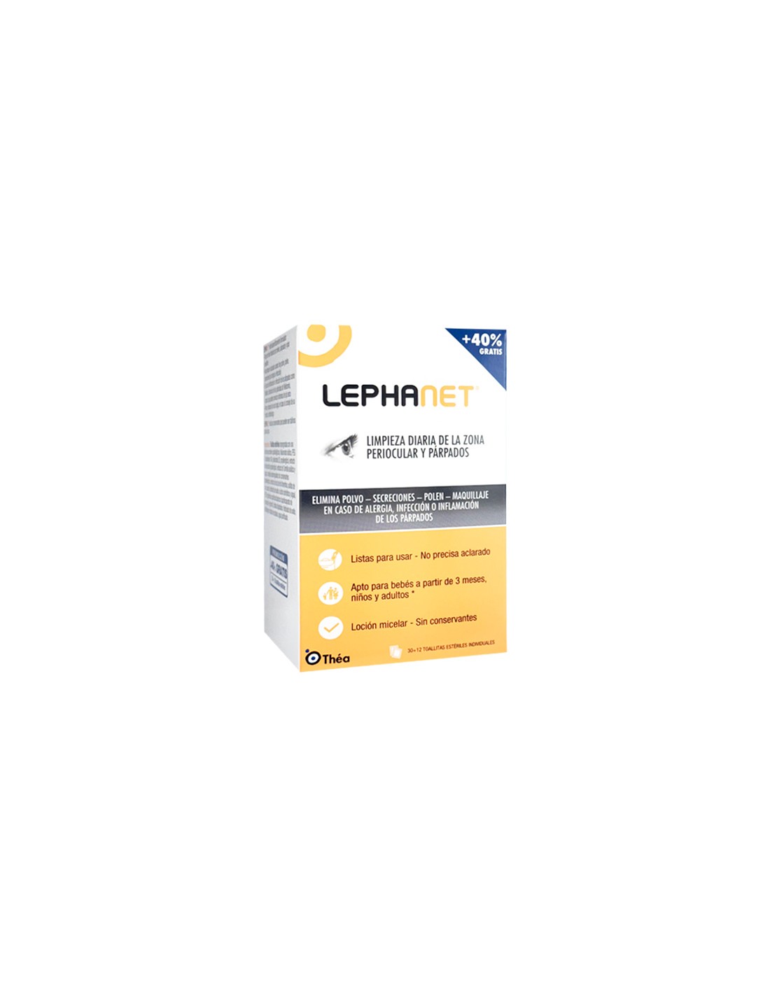 Mantiene los párpados limpios a la vez que respeta la piel alrededor de los ojos y su flora bacteriana natural.
