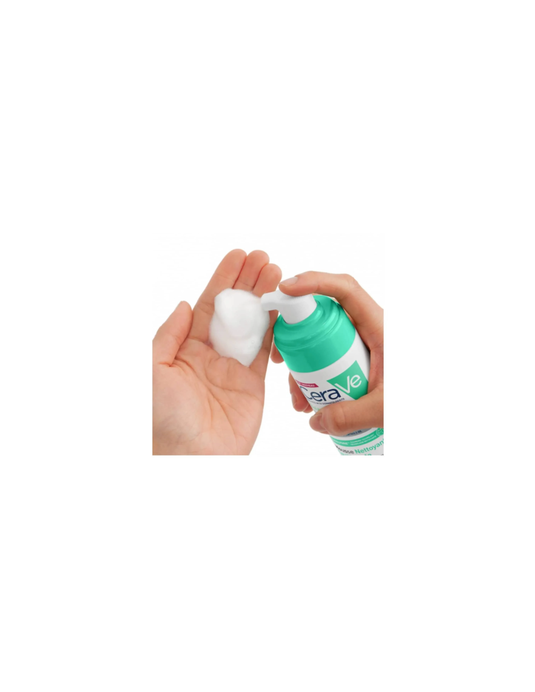 CeraVe Limpiador Air Foam Reequilibrante es una espuma limpiadora facial suave, ideal para pieles normales a grasas. Gracias a su textura ligera en espuma, limpia eficazmente sin alterar la barrera natural de la piel. Enriquecido con 3 ceramidas esenciales, niacinamida y ácido hialurónico, ayuda a mantener la hidratación, reducir rojeces y equilibrar el pH de la piel.