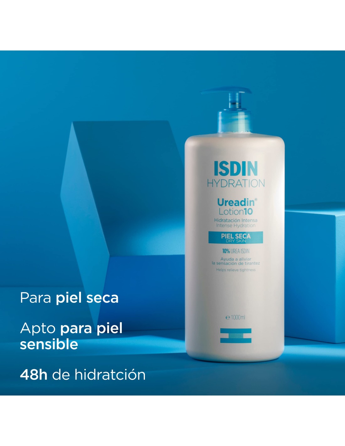 ISDIN Hydration Ureadin Lotion 10 es una loción corporal hidratante indicada para el cuidado diario de pieles secas. Su fórmula enriquecida con un 10% de Urea Isdin ayuda a mantener la hidratación de la piel, restaurando su barrera protectora natural y proporcionando una sensación de suavidad inmediata. Esta loción está diseñada para mejorar la elasticidad de la piel, evitando la descamación y la sequedad excesiva.