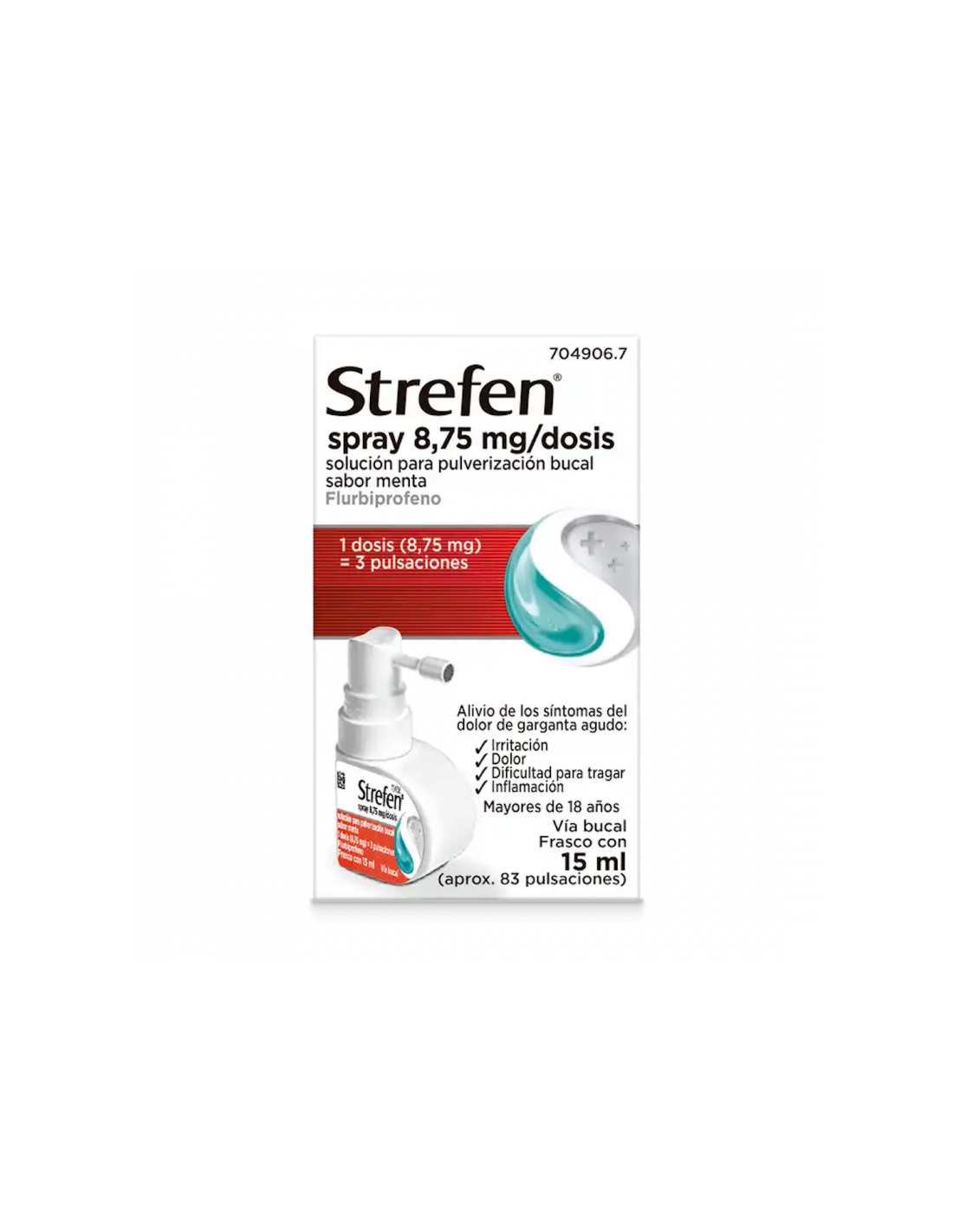 Strefen spray sabor menta se utiliza para el alivio de los síntomas del dolor de garganta agudo tales como irritación, dolor, dificultad para tragar e inflamación en adultos mayores de 18 años
