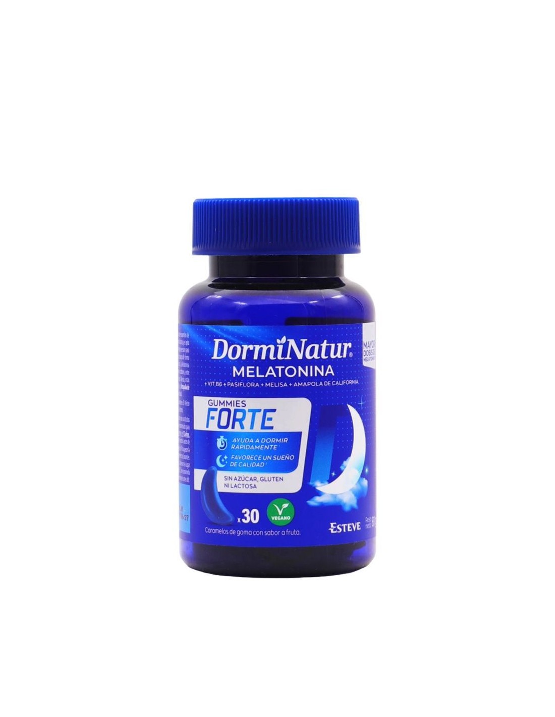 Dorminatur Gummies Forte son complementos alimenticios en formato de caramelos de goma con agradable sabor a fruta, diseñados para favorecer el descanso nocturno de forma natural. Están formulados con melatonina, que ayuda a reducir el tiempo necesario para conciliar el sueño, así como con extractos de plantas como la pasiflora, la valeriana y la melisa, conocidas por sus propiedades calmantes. No contienen azúcares añadidos ni gluten, siendo aptos para adultos que buscan una alternativa cómoda y eficaz para mejorar la calidad del sueño.