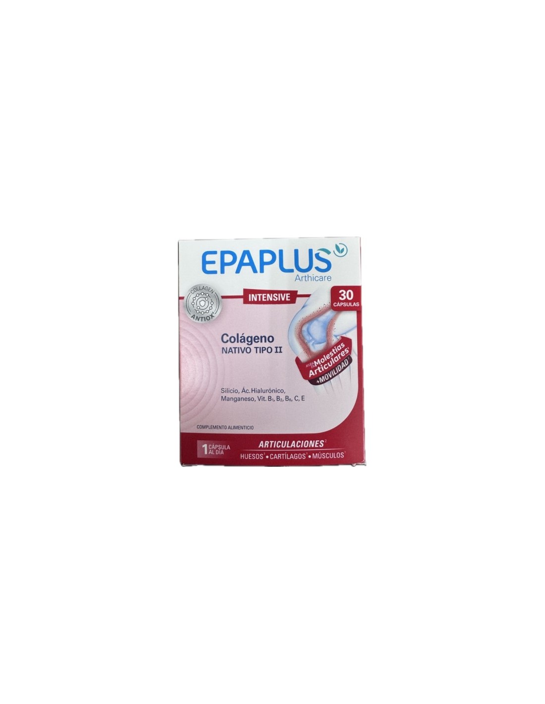 **EPAPLUS Arthicare Intensive Colágeno Nativo Tipo II** es un complemento alimenticio diseñado para el cuidado de las articulaciones. Su fórmula avanzada con colágeno tipo II ayuda a mejorar la movilidad articular y reducir la rigidez, especialmente en personas con desgaste articular o molestias en las articulaciones.