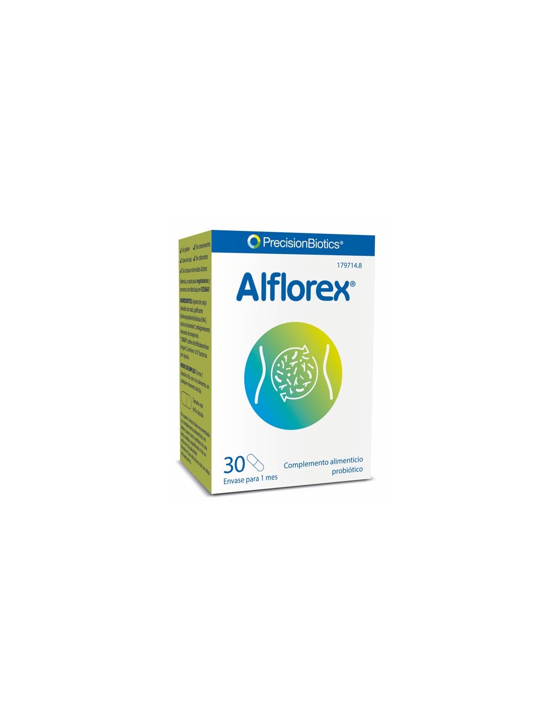 Alflorex es un suplemento probiótico diseñado para apoyar la salud gastrointestinal. Este producto contiene cepas específicas de bacterias beneficiosas para el intestino y está formulado para equilibrar la flora intestinal y favorecer el bienestar digestivo. Es el único probiótico que ha demostrado su eficacia en la reducción de los síntomas que más afectan a la calidad de vida de las personas que sufren el Síndrome del Intestino Irritable (SII), hinchazón, dolor abdominal, flatulencia, diarrea y estreñimiento.
