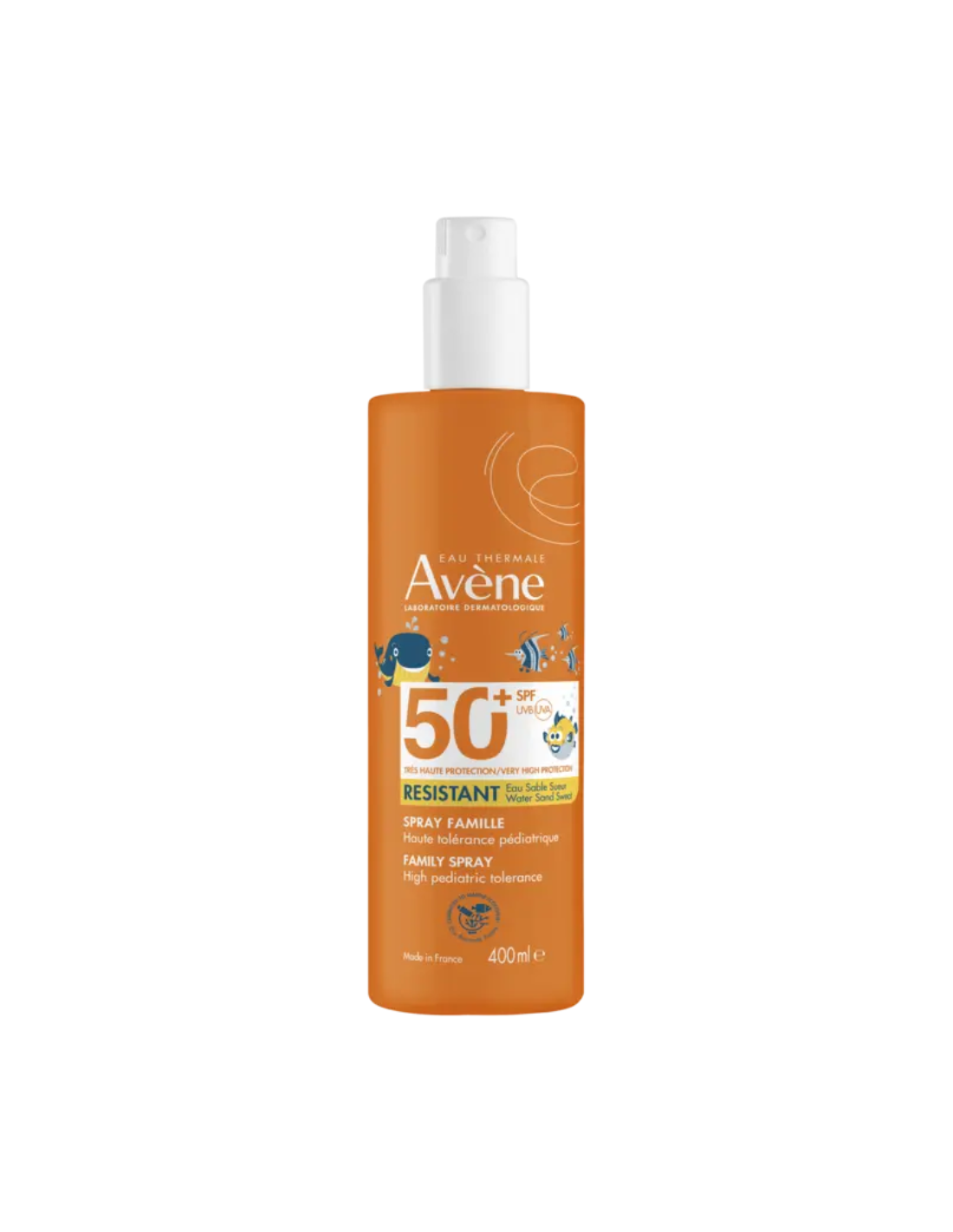 Avène Spray Familia SPF 50+ es un protector solar en formato spray de muy alta protección, ideal para toda la familia. Su fórmula es resistente al agua y está enriquecida con Agua Termal de Avène, proporcionando una acción calmante y antioxidante.