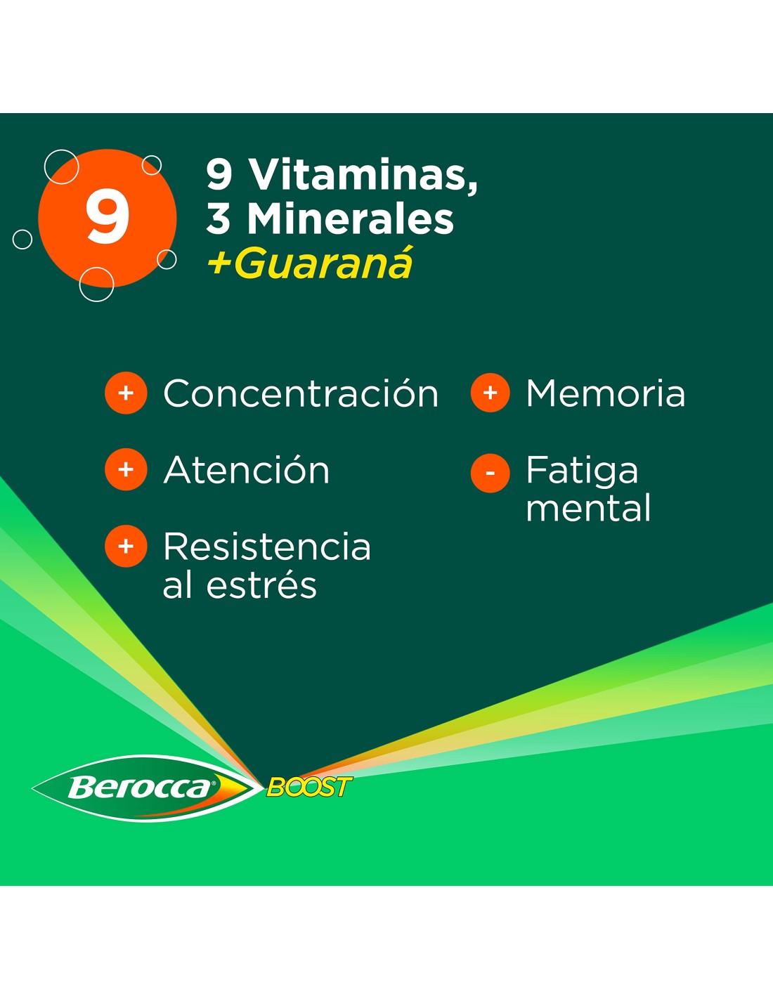 Combinación específica de vitaminas del grupo B, vitamina C, minerales esenciales, guaraná de origen natural y cafeína, especialmente desarrollada para ayudar en los procesos fisiológicos del funcionamiento de la mente y favorecer un adecuado rendimiento intelectual. Además, por su contenido en guaraná, tiene un rápido inicio de acción.