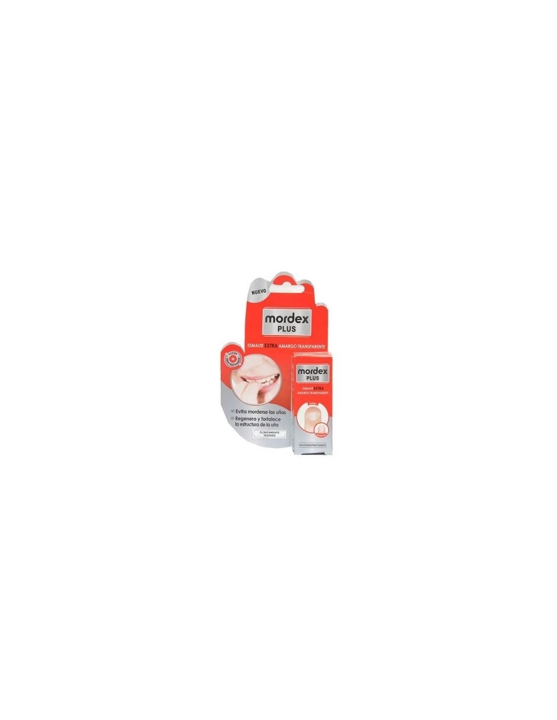 Cuidado de las uñas mordidas y dañadas. Es un esmalte extra amargo, transparente y totalmente inocuo que combina dos acciones: Evita morderse las uñas gracias a su fórmula más amarga y regenera y fortalece la estructura de la uña, gracias a su componente reestructurante, la Vitamina E.