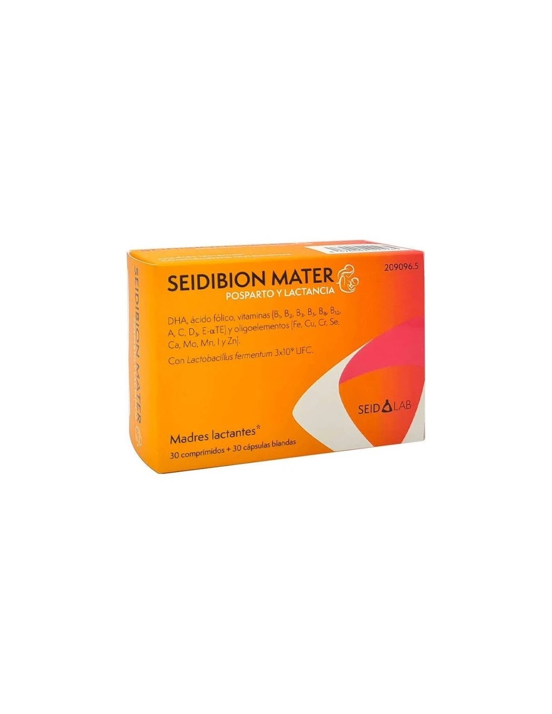 SEIDIBION Mater es un complemento alimenticio especialmente diseñado para mujeres embarazadas y en periodo de lactancia. Este producto proporciona una combinación equilibrada de vitaminas, minerales y ácidos grasos esenciales necesarios para el desarrollo saludable del bebé y el bienestar de la madre. El envase incluye 30 cápsulas duras y 30 cápsulas blandas para una suplementación completa.
